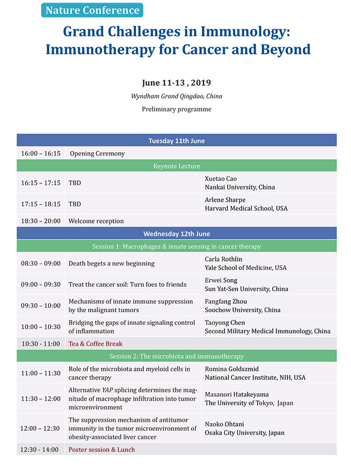 此會議是以《Nature Immunology》、《Nature Review Immunology》、《Nature》和《Cellular &Molecular Immunology》四本國際頂級免疫學期刊為交流平臺,以促進國際免疫學家交流為主旨的學術(shù)會議,自2009年起本系列會議啟動召開,現(xiàn)已成功舉辦六屆會議。