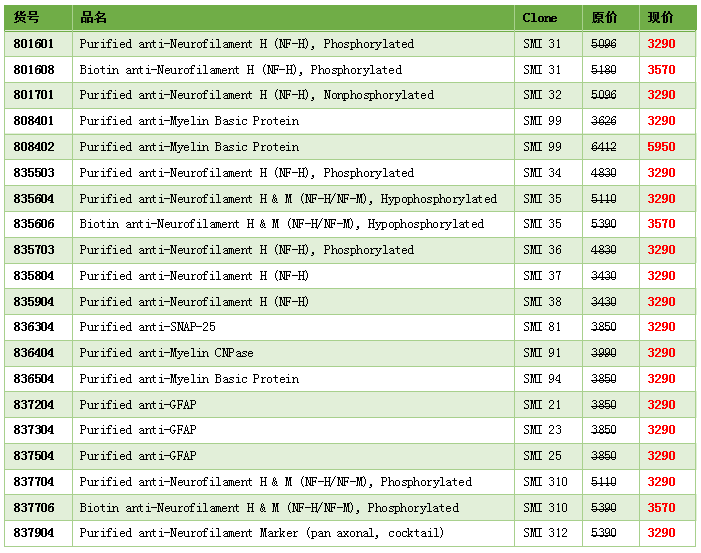 SMI?克隆號系列抗體是BioLegend 旗下品牌 Covance非常重要而知名的產(chǎn)品線,被業(yè)內(nèi)譽為研究神經(jīng)細胞特異marker的金標準。