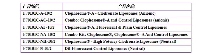 Clophosome?系列產(chǎn)品提供多種空白對(duì)照,各種組合包裝,便于選擇,相關(guān)產(chǎn)品信息如下: