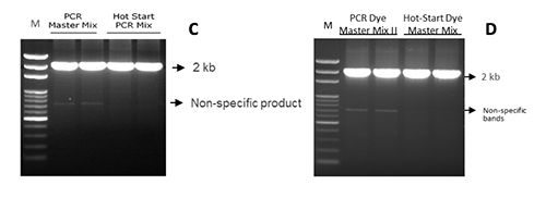 *使用Hot-Start Master Mix(含熱啟動酶)的實驗組PCR產(chǎn)物特異性較高