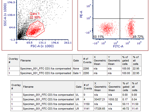 出現(xiàn)補(bǔ)償編輯欄,從PE通道中去除FITC的熒光信號,使PE通道的Mean/Median值與陰性細(xì)胞群一致。