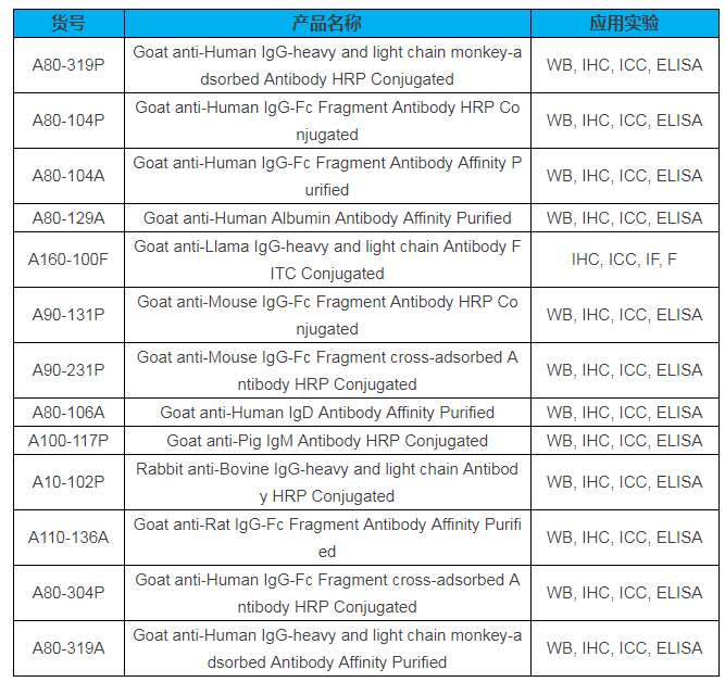 Bethyl 二抗熱賣(mài)產(chǎn)品列表