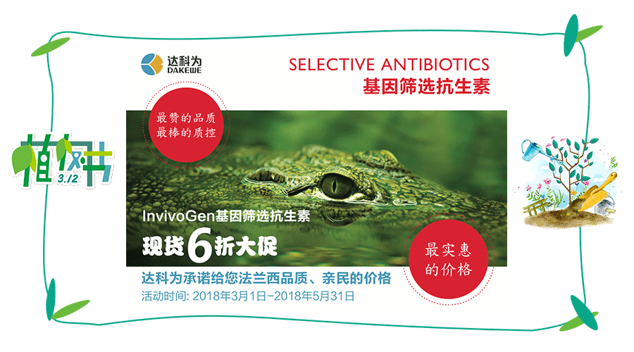 達(dá)科為準(zhǔn)備了大量InvivoGen篩選抗生素現(xiàn)貨,即日起篩選抗生素下列現(xiàn)貨參加6折促銷活動(dòng)