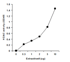 圖1.從MCF-7細胞中制備核提取物,并測定不同量的提取物中HDAC的活性, 結(jié)果顯示該試劑盒具有高特異性