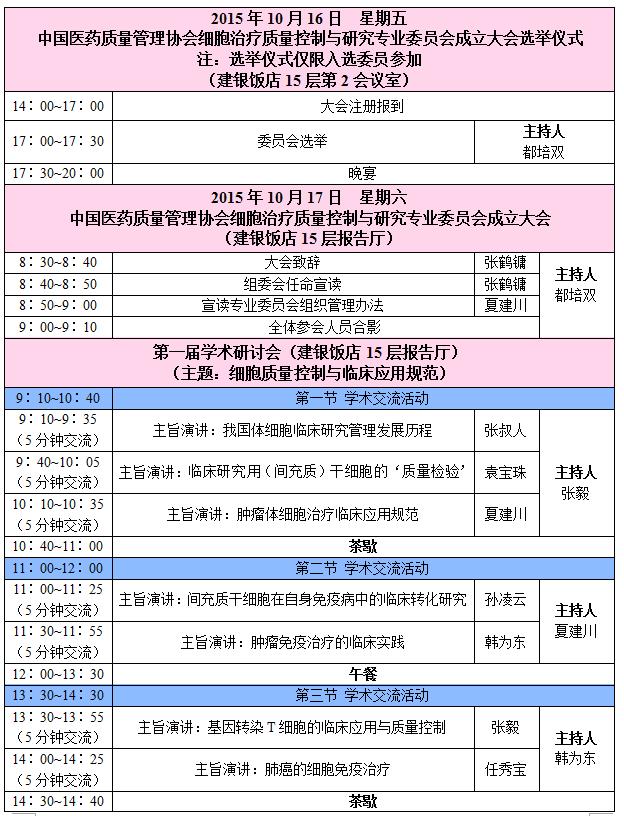 由中國(guó)醫(yī)藥質(zhì)量管理協(xié)會(huì)細(xì)胞治療質(zhì)量控制與研究專業(yè)委員會(huì)(籌)主辦、中山大學(xué)附屬腫瘤醫(yī)院、鄭州大學(xué)一附院、拜西歐斯(北京)生物技術(shù)有限公司聯(lián)合承辦的“中國(guó)醫(yī)藥質(zhì)量管理協(xié)會(huì)細(xì)胞治療質(zhì)量控制與研究專業(yè)委員會(huì)成立大會(huì)暨第一屆學(xué)術(shù)研討會(huì)”將于2015年10月16-17日在北京召開,成立大會(huì)將選舉產(chǎn)生第一屆委員代表和常務(wù)委員會(huì)委員,研討會(huì)將圍繞“細(xì)胞質(zhì)量控制與臨床應(yīng)用規(guī)范”主題開展學(xué)術(shù)交流,屆時(shí)將邀請(qǐng)國(guó)內(nèi)外細(xì)胞治療領(lǐng)域(包括干細(xì)胞和免疫細(xì)胞)的專家學(xué)者就研討會(huì)主題作學(xué)術(shù)報(bào)告。本專業(yè)委員會(huì)是細(xì)胞治療質(zhì)量控制與研究領(lǐng)域學(xué)術(shù)交流的大平臺(tái),將定期舉辦各種規(guī)模的學(xué)術(shù)交流會(huì)議,通過學(xué)術(shù)會(huì)議,以期達(dá)成行業(yè)共識(shí),推動(dòng)細(xì)胞制劑質(zhì)量控制標(biāo)準(zhǔn)體系的建立和相關(guān)政策出臺(tái),使我國(guó)的細(xì)胞治療行業(yè)在規(guī)范化的基礎(chǔ)上健康有序發(fā)展。