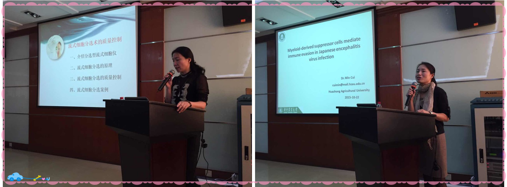 接著是華中農(nóng)業(yè)大學(xué)崔旻副教授分享了近期的研究成果,MDSC細(xì)胞大日本腦炎病毒中介導(dǎo)的免疫逃逸機(jī)制。崔老師重點(diǎn)介紹了IL-10的作用,產(chǎn)生的細(xì)胞及其介導(dǎo)的機(jī)制,并詳細(xì)講解了該課題研究過(guò)程中的一些思路。