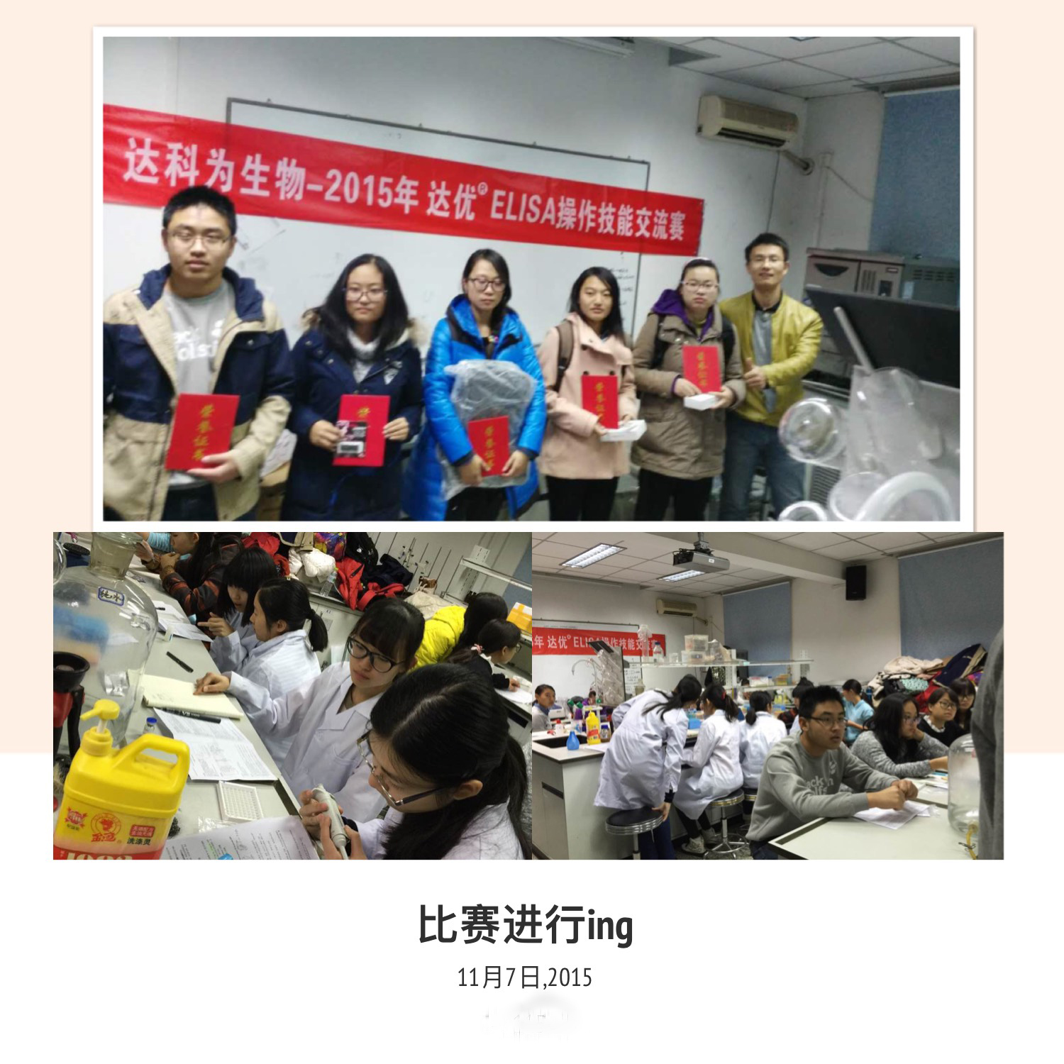 11月7日,由我司主辦的‘百場(chǎng)’“達(dá)優(yōu)?ELISA操作技能交流賽”在北京工業(yè)大學(xué)成功舉辦。上午九點(diǎn)在北京工業(yè)大學(xué)生命東樓3層307開(kāi)始比賽,共25人參加。