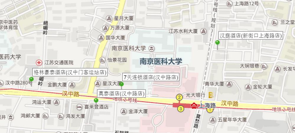 2.莫泰酒店(漢中路店):白下區(qū)漢中路159號(漢中路與羅廊巷交匯處)