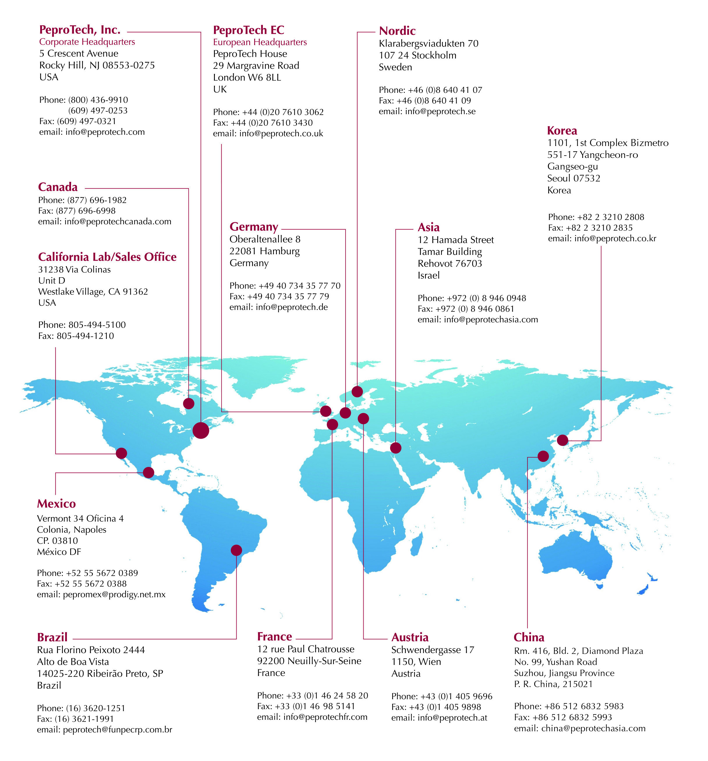 PeproTech 公司創(chuàng)立于1988年,總部位于美國(guó)新澤西州。 PeproTech 公司始 終致力于為生命科學(xué)研究和細(xì)胞治療市場(chǎng)提供高品質(zhì)的細(xì)胞因子產(chǎn)品。在過 去的27年 里,PeproTech在推動(dòng)這些領(lǐng)域的發(fā)展中一直扮演著重要角色。美 國(guó)總部的先進(jìn)生產(chǎn)設(shè)施和遍布十余個(gè)國(guó)家的客戶服務(wù)網(wǎng)絡(luò),使得PeproTech 公司成為科研工作者可以信賴的合作伙伴。同時(shí),來(lái)自科研院所和工業(yè)界的 研究人員為我們產(chǎn)品線的不斷擴(kuò)充提供了寶貴的意見和創(chuàng)意源泉。PeproTech 公司運(yùn)用創(chuàng)新方法開發(fā)出 2000 余種高品質(zhì)、高穩(wěn)定性和重復(fù)性的 產(chǎn)品,包括大腸桿菌、昆蟲細(xì)胞和哺乳動(dòng)物細(xì)胞來(lái)源的重組細(xì)胞因子/蛋白 、相關(guān)單克隆/多克隆抗體、ELISA試劑盒、無(wú)血清細(xì)胞培養(yǎng)基以及其他細(xì)胞 因子相關(guān)試劑。欲了解 PeproTech 全套產(chǎn)品線、獲取產(chǎn)品詳情和參考文獻(xiàn)等,請(qǐng)?jiān)L問其官網(wǎng):www.peprotech.com。