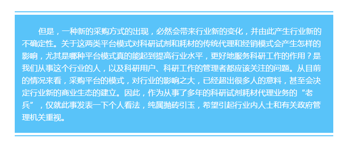 單位沒有自己出資搭建平臺,而是使用已經(jīng)存在的商業(yè)化采購平臺,所有權(quán)也不屬于單位,服務器也沒有在本單位,同時與其它多家單位共享平臺的使用。這種模式,我們稱之為第三方商城平臺。 這樣的平臺開始只在中科院系統(tǒng)出現(xiàn),現(xiàn)在已經(jīng)開始在其它大學里采用。