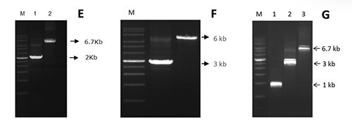 F 使用PCR Dye Plus Master Mix擴增ea59基因(3 kb)和xis基因(6 kb)