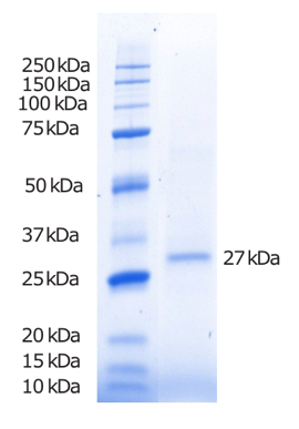 STING通過胞漿區(qū)域與CDNs結(jié)合。InvivoGen提供的重組STING蛋白對(duì)應(yīng)可溶性的胞漿結(jié)構(gòu)域(aa 137-379)R232突變型,是普遍的人源STING蛋白的同型。這個(gè)27kDa的重組蛋白產(chǎn)生自哺乳動(dòng)物中國倉鼠卵巢細(xì)胞系(CHO),通過親和層析純化,不帶標(biāo)簽,能夠被市面上的商品化人源STING抗體所識(shí)別。
