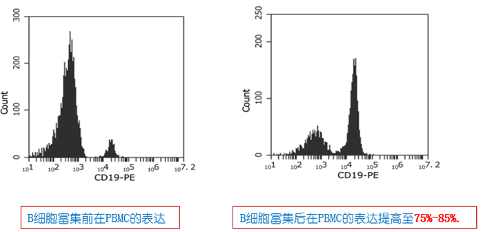 例1:pluriSpin? Human B Cell Enrichment(Cat#19-06001-31),B細胞富集后在PBMC的表達提高至75%-85%.: