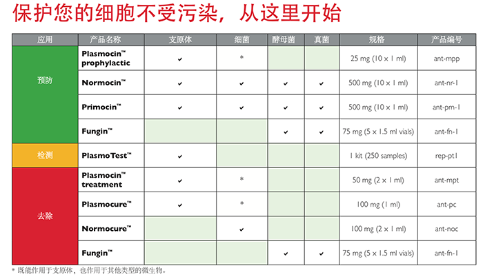 InvivoGen提供多種高效抗污染試劑,幫助您預(yù)防、去除和檢測(cè)微生物污染。