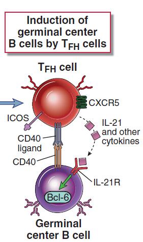 ICOS: Tfh 細胞上的 ICOS 與 B 細胞上的 ICOS-Ligand 作用,傳遞協(xié)同刺激信號,對 Tfh 細胞的產(chǎn)生及存活、 IL-21 的表達、發(fā)生中心的形成及特異性抗體的產(chǎn)生都至關(guān)重要。