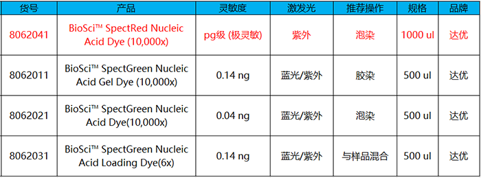 簡(jiǎn)單來(lái)說(shuō),就是小達(dá)要給大家推薦一款真正安全無(wú)毒的核酸染料,來(lái)自達(dá)優(yōu)的SpectRedNucleic Acid Dye(貨號(hào):8062041),簡(jiǎn)稱(chēng)ND4。