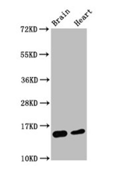 圖1. 使用0.55 ug/ml Histone H3.1K4me2單克隆抗體(貨號(hào):A68400)檢測小鼠腦和心臟組織Histone H3.1K4me2蛋白表達(dá)水平,檢測到目的蛋白大小15 KDa。
